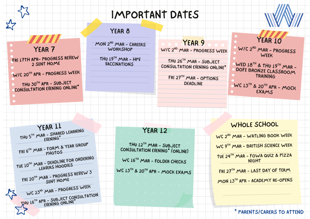 A huge thank you to the Friends of Watling Academy for another sell-out doughnut sale and to all those who supported the event. Together we raised over £500 which will be invested back into the school to benefit our students and school community. Tickets are now on sale for FoWA’s next event – a Quiz & Pizza Night on Tuesday 24th March – please check ParenMail for more information!
