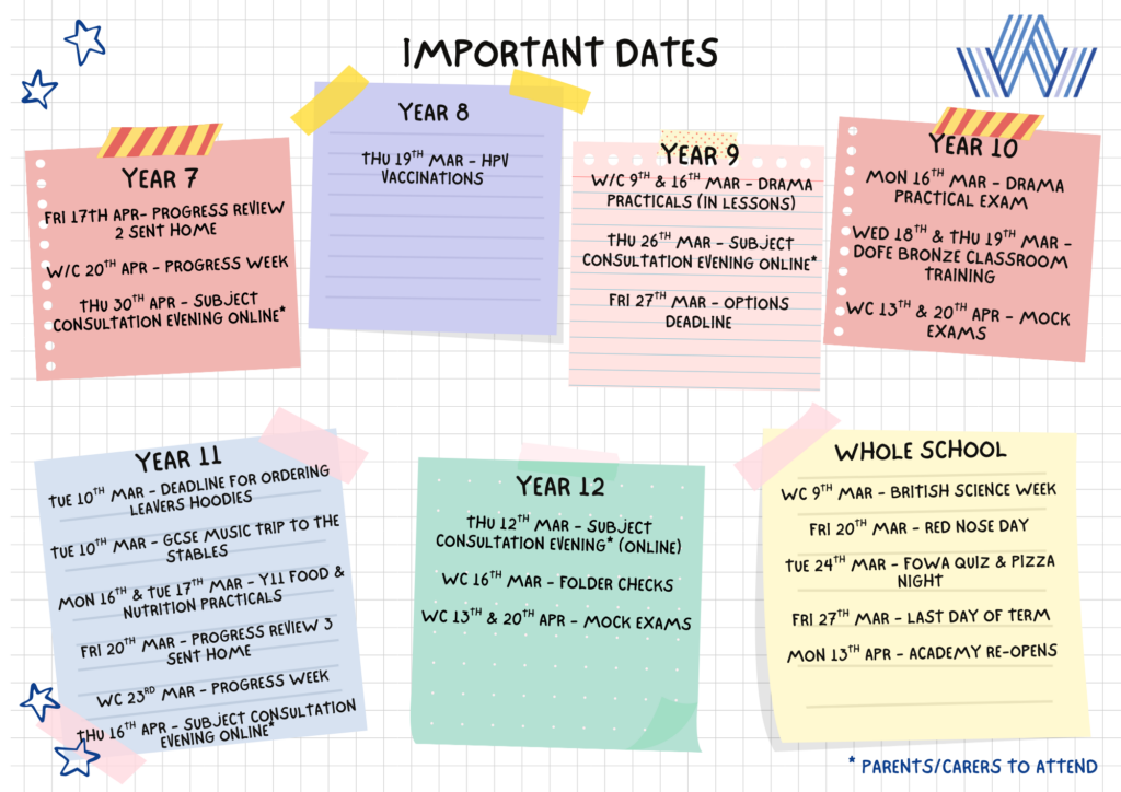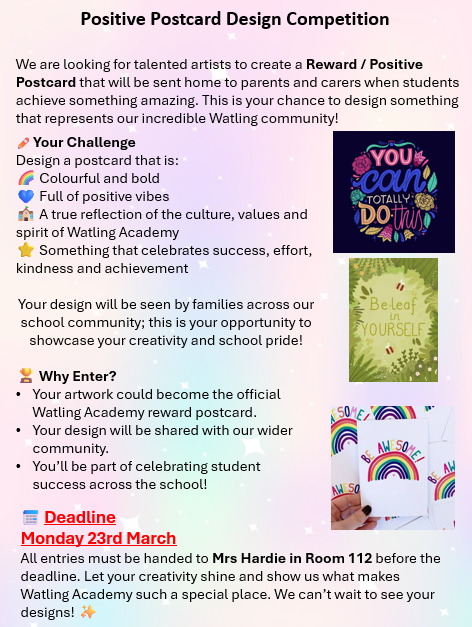 Tickets are now on sale for the Friends of Watling Academy (FoWA) Quiz & Pizza Night on Wednesday 24th March, 6:00–8:45pm. Join us for great prizes, plenty of fun, and a fantastic evening for the whole school community. Don’t miss out, order your tickets via ParentMail Shop by 6pm on 17th March. We hope to see you there!