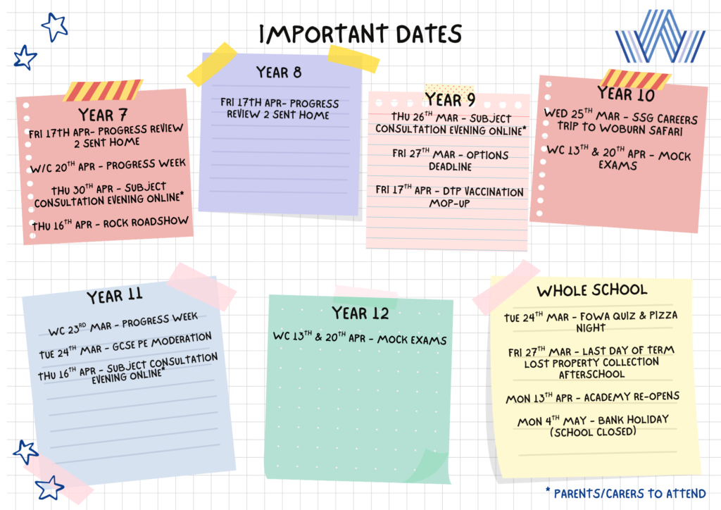 As parents/carers of Year 9 students are aware, we have our Year 9 DTP/Men ACWY vaccine catch up session after the Easter Holidays on Friday 17th April. If you have a child in Year 9 for whom you have not consented and wish to do so, please call the vaccination team on 0300 555 5055 (option 5) before the date above.