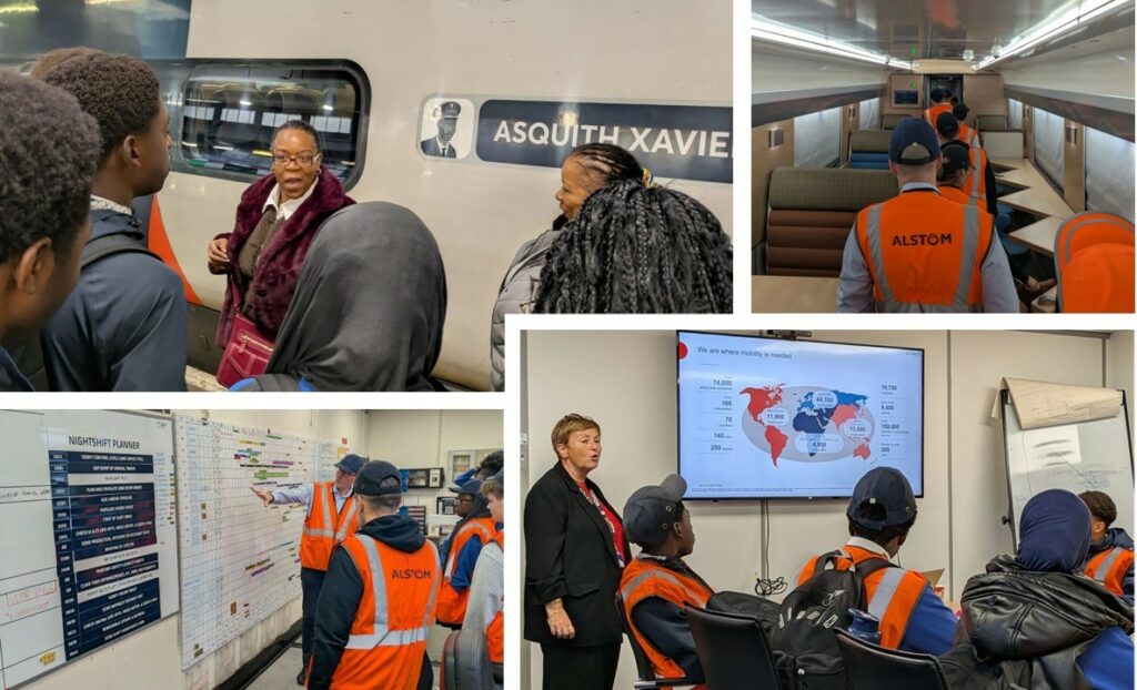 A group of twenty students visited the Alstom train depot in Wembley on Tuesday as part of Avanti’s Feel Good Future programme. Organised to coincide with Black History Month, the students travelled into London on an Avanti train bearing the nameplate of Asquith Xavier—the UK’s first Black train guard, appointed in the 1960s.